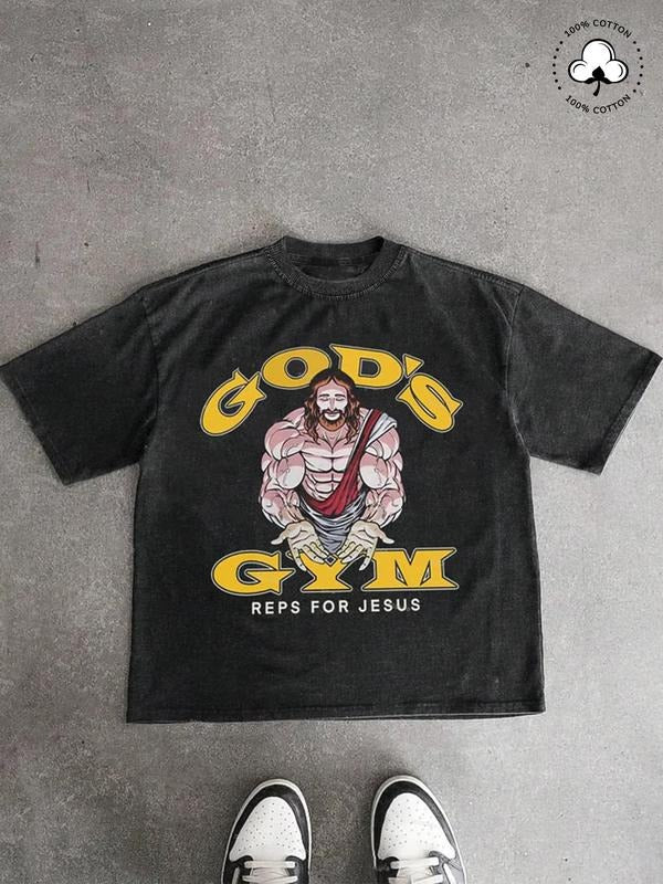 Men's Jesus & Letter Print Round Neck Graphic Tee, Regular Fit Casual Short Sleeve T-shirt for Summer, Men's Top for Daily Wear, Tropical, Cotton