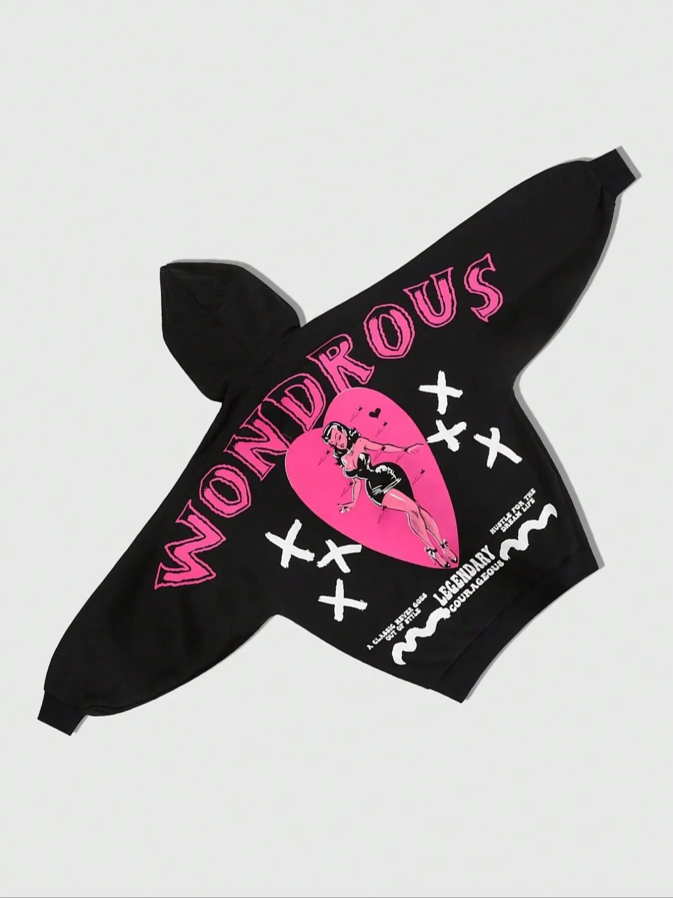 Men's Letter & Graphic Print Drawstring Zip Up Hoodie, Regular Fit Casual Comfy Long Sleeve Hooded Sweatshirt for Fall & Winter, Men's Clothes for Daily Wear
