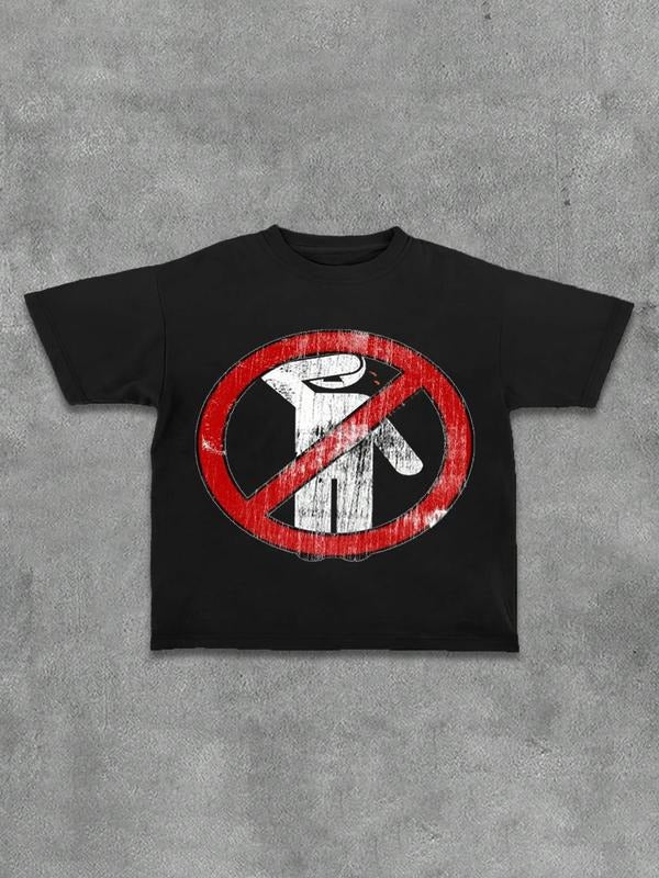 Men's Letter & No Entry Sign Print Round Neck Tee, Regular Fit Casual Slogan Graphic Short Sleeve T-Shirt for Summer, Men's Top for Daily Wear, Cotton