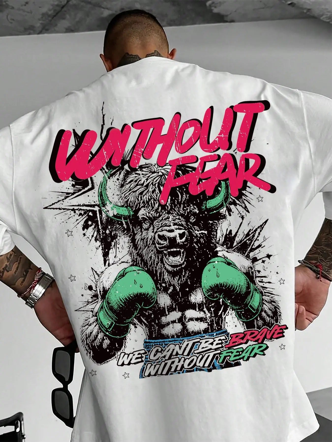 Men's Regular Fit Bull Head & Letter Print Round Neck Graphic Tee, Casual Short Sleeve T-shirt for Summer, Men's Top for Daily Wear
