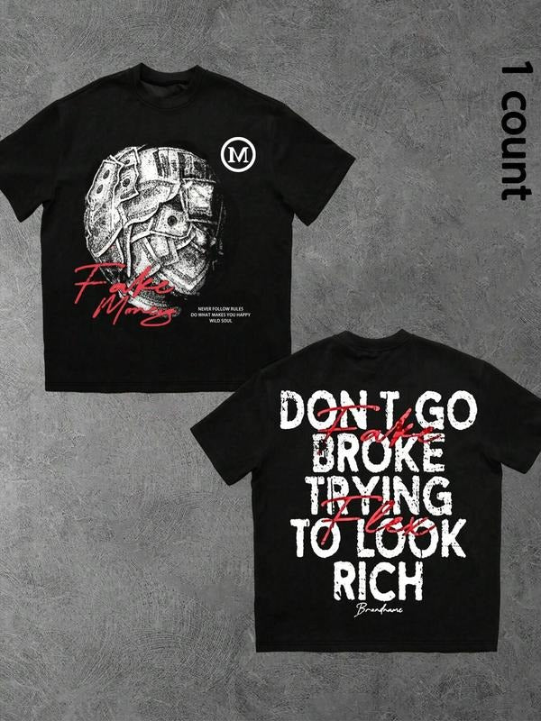 Men's Regular Fit Money & Slogan Print Round Neck Graphic Tee, Casual Short Sleeve Crew Neck T-shirt for Daily Wear, Fashion Men's Top for All Seasons
