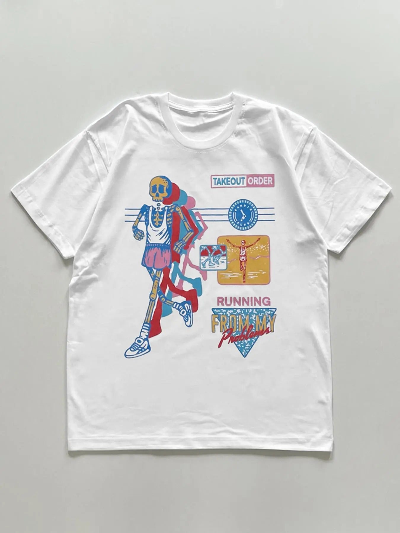 Men's Skeleton Running Graphic Print Round Neck Tee, Regular Fit Casual Street Short Sleeve T-shirt, Men's Summer Top for Daily Wear