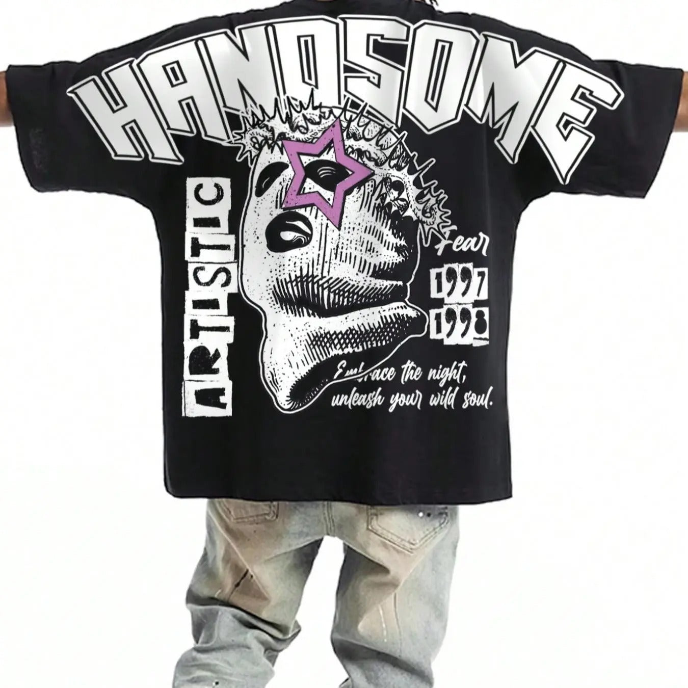 Men's Vintage Letter & Graphic Print Drop Shoulder Tee, Regular Fit Casual Street Soft Comfy Round Neck Half Sleeve T-shirt for Summer, Menswear for Daily Wear