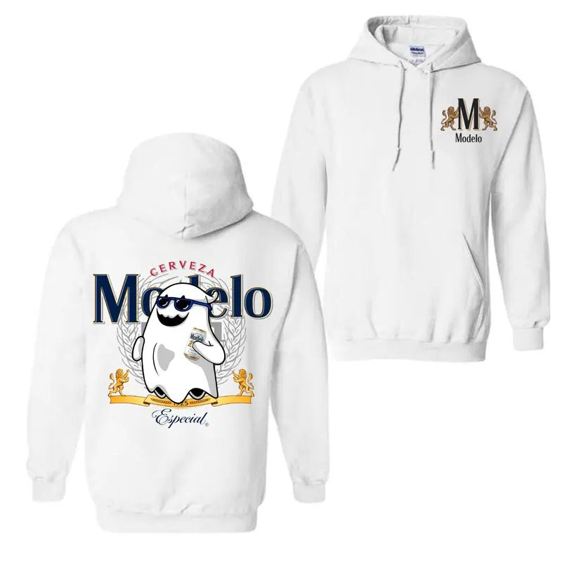 Modelo Ghost Halloween 2 Sided Hoodie, Modelo Hoodie For Men And Women, Halloween Trendy Hoodie Boo Beer Meme Funny Hoodie, Perfect Graphic Tees for Men for Women