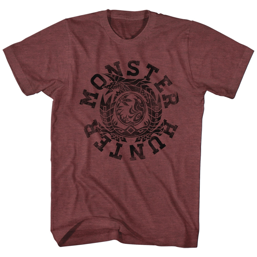 Monster Hunter Mens S/S T-Shirt - Mh Circle - Heather Vintage Maroon Heather