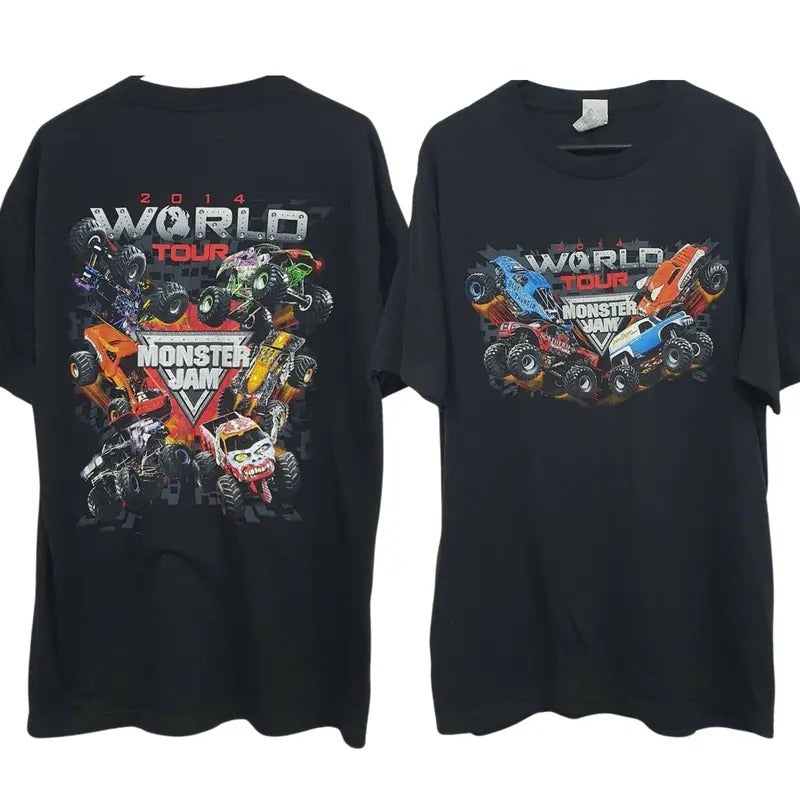 Monster Jam Monster Truck World Tour 2014 Men's Graphic T-Shirt ? Bold Monster Truck Design, Unisex Cotton Top, Perfect for Casual Wear, Classic Men's Apparel