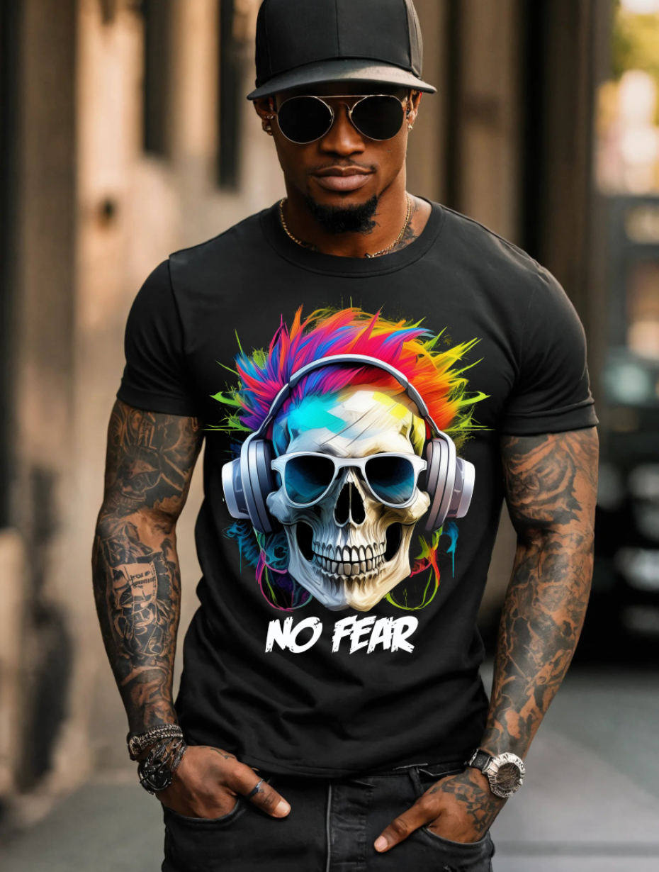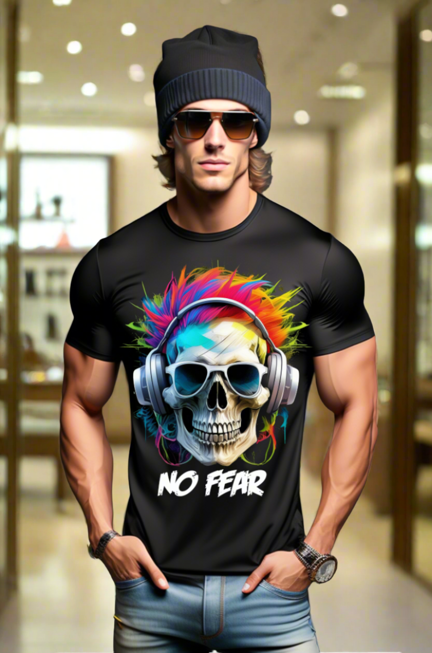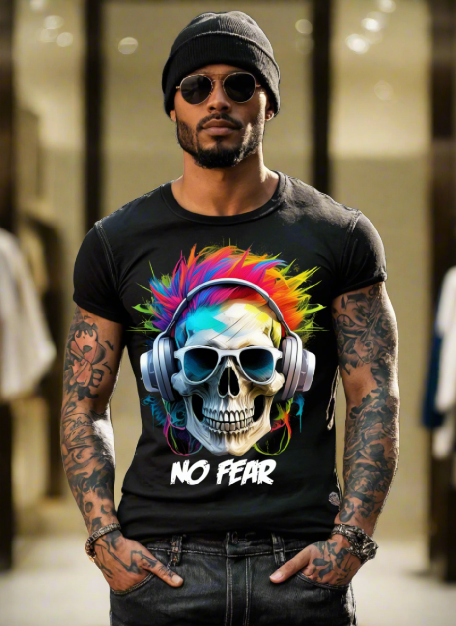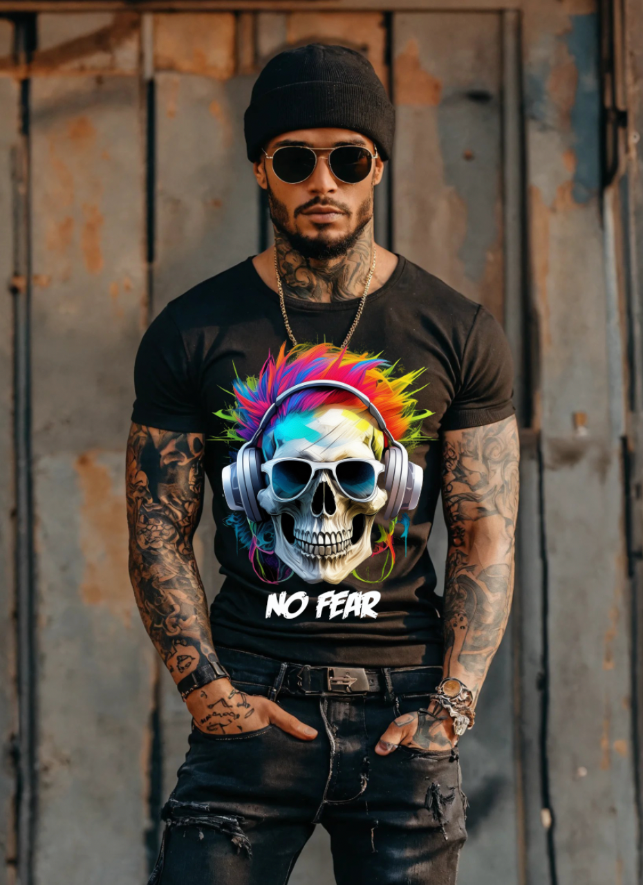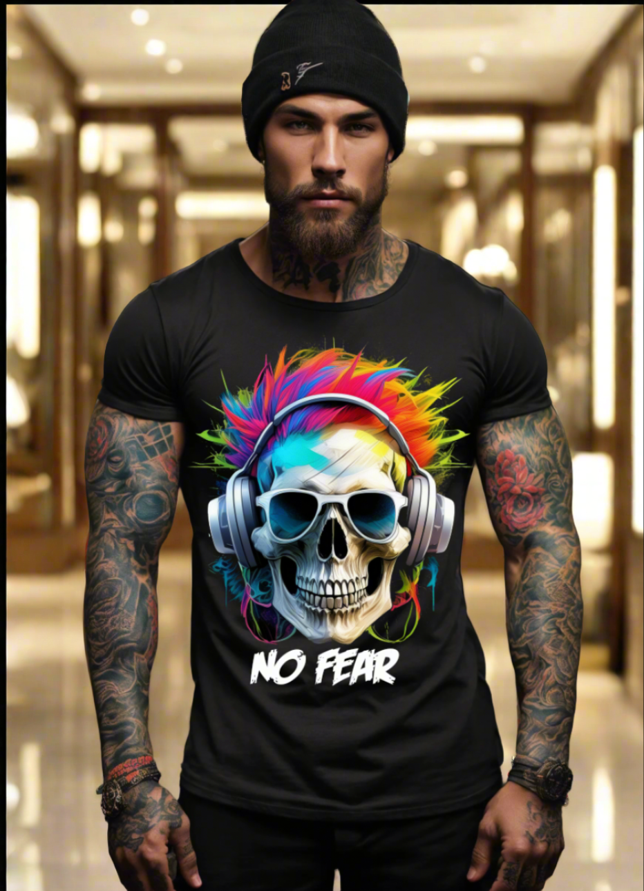 "No Fear' Skull Art T-Shirt - Unique and Exclusive Design | Grooveman Music TM"