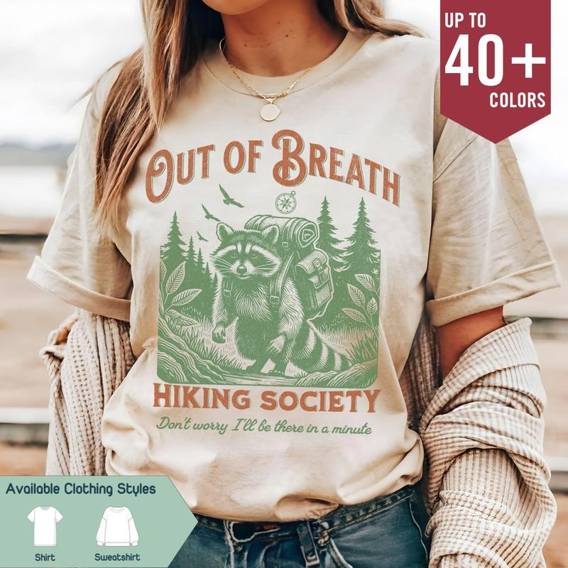 Out of Breath Hiking Society Shirt, Funny Raccoon Tee, Trash Panda Shirt, Retro Hiking T-shirt, Nature Lover Apparel, Y2K Raccoon Shirt