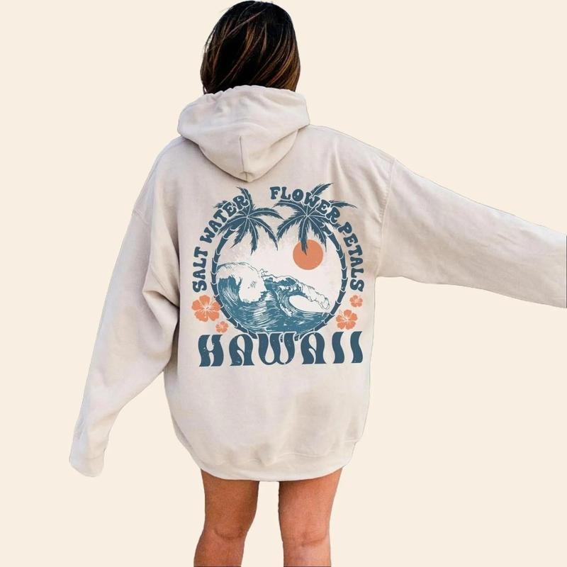 Oversized Beachy Hoodie Hawaii Palm Trees Cute Summer Graphic Sweatshirt Trendy Summer Tops Aesthetic Clothes Beach