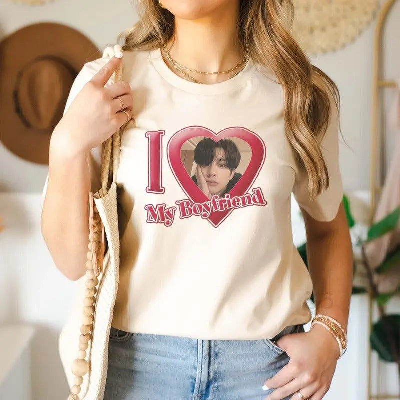 Personalized "I Love My Boyfriend/Girlfriend" Custom Photo T-Shirt, Customizable I Love My Boyfriend Shirt, Kpop Shirt, Gift for Kpop Fan