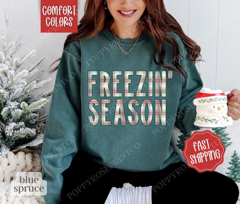 Plaid Freezin' Season Comfort Colors Sweatshirt, Trendy Women's Crewneck, Winter Women's Sweater
