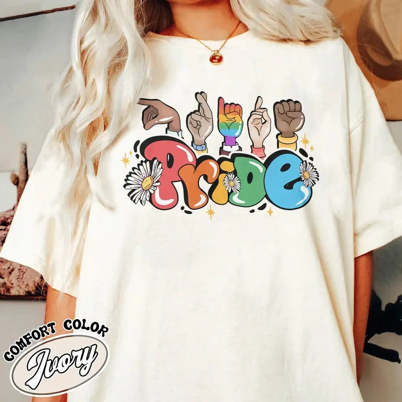 Pride 2025 Comfort Colors Shirt,Sign Language Pride Shirt, LGBTQ Groovy T Shirt,LGBT Be Kind T-Shirt, Equality Shirt, Pride Shirt