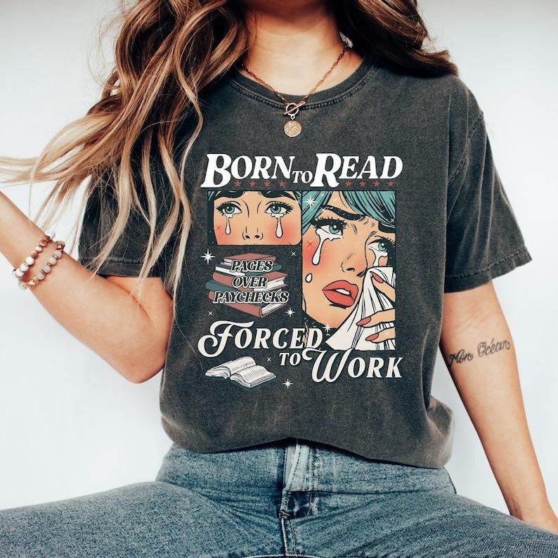 Retro Comfort Born To Read Bookish Shirt, Funny Reader Book Addict Tee, Spicy Books Sweater, Smut Shirt, Aesthetic Womens Tshirt