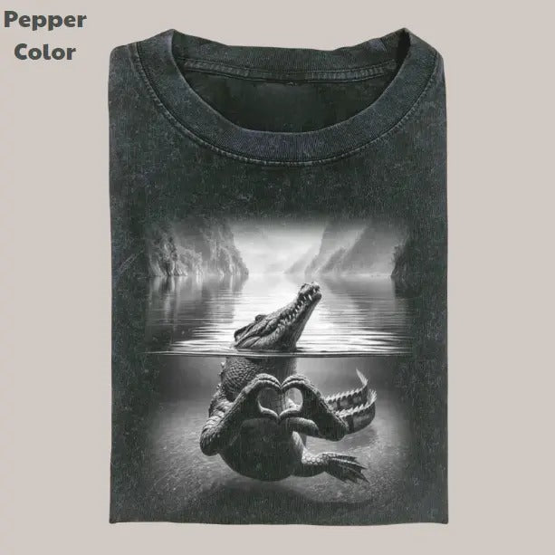 Retro Funny Vintage Graphic Tee, Crocodiles Heart T-Shirt, Unisex Meme Cringe Funny Dumb Shirt, Menswear Womenswear Streetwear