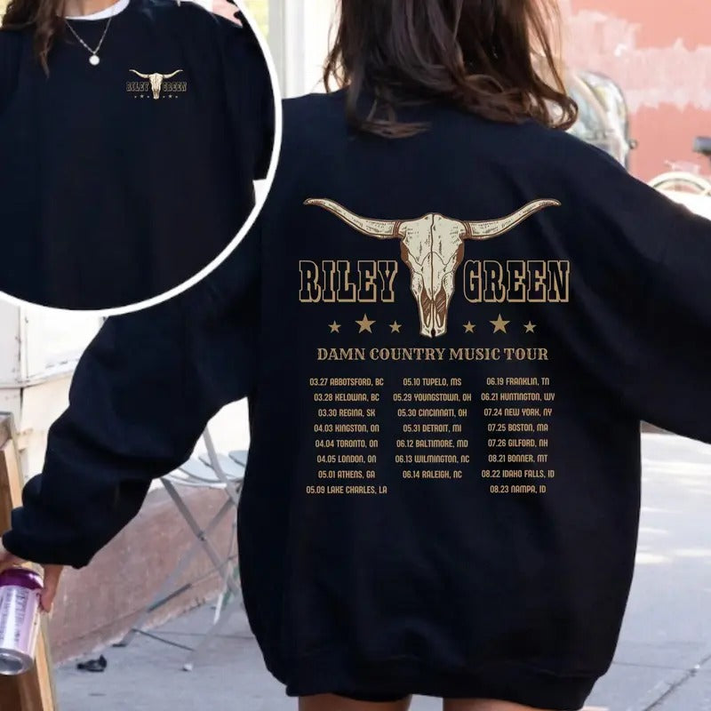 Rileyy Country Green Music Tour 2 Sides Shirt, Fan Merch, Tour Concert 2025 Outfit, Unisex Sweater Pullover Tee