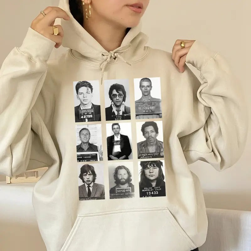 Rock Stars Mugshot Hoodie, Music Legend Tee, Music Lovers Apparel, Unisex Sweater Pullover Tee