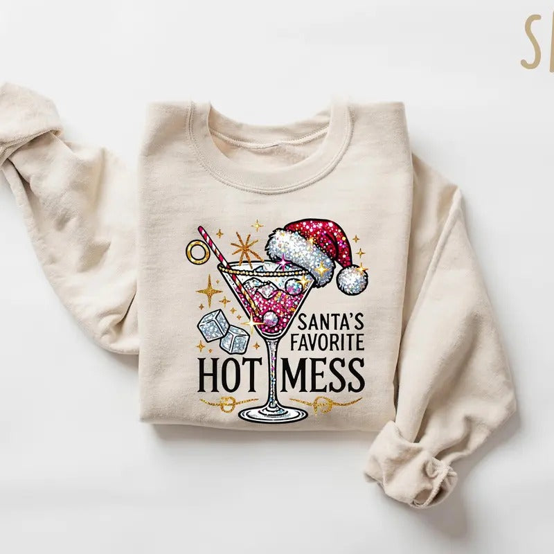 Santa's Hot Mess Sweater, Christmas Martini Hoodie, Christmas Drink Sweatshirt, Christmas Party Sweatshirt, Drink Sweater For Women