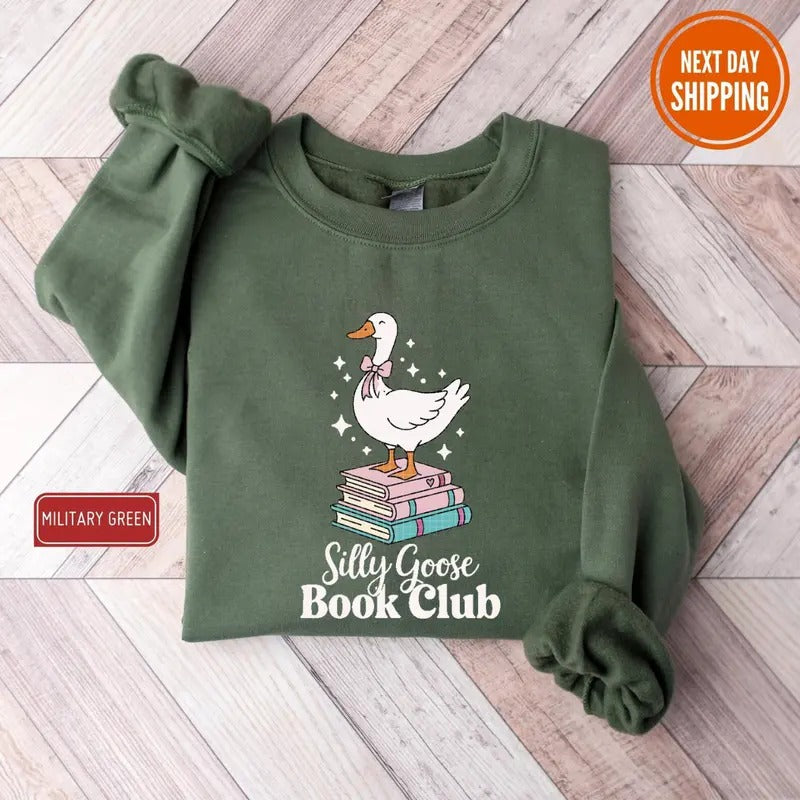 Silly Goose Book Club Sweatshirt, Funny Goose, Trending Goose Design for Shirt, Gift For Womens University Hoodie, Gift For Men Her
