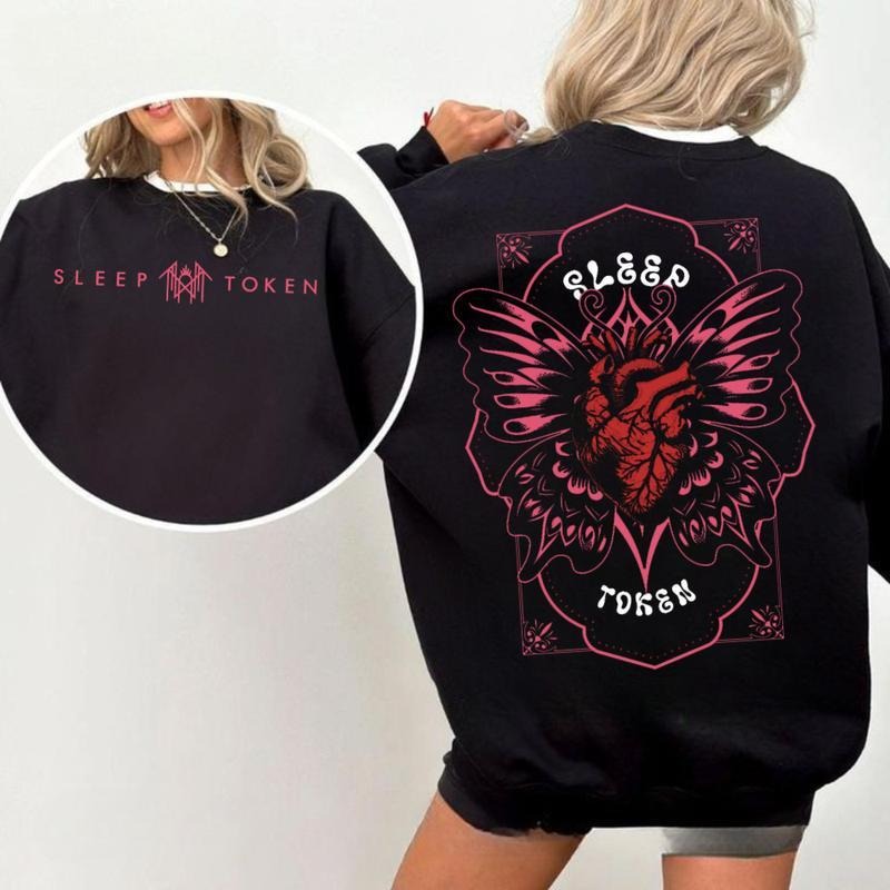 Sleep Token Butterfly Heart Sweatshirt, Gothic Aesthetic Crewneck, Dark Streetwear for Fans, Tour 2025 Graphic Shirt for Women, for Men