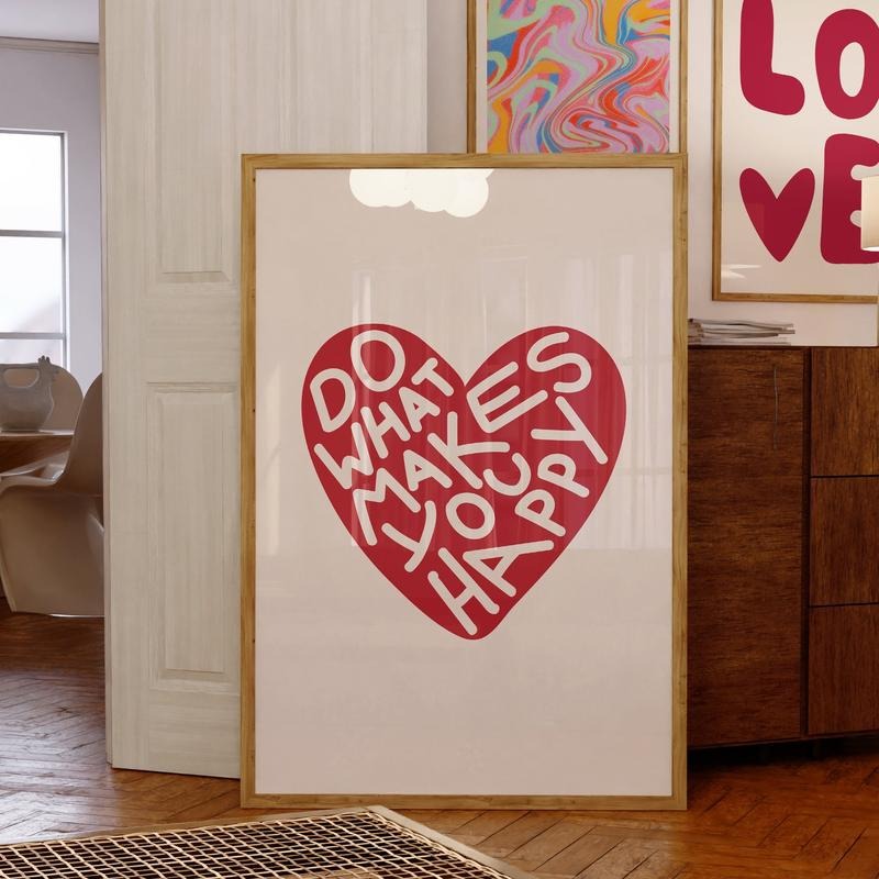 Soft Pink Heart Love Poster No Frame, Pink Decor Wall Art, Modern Colorful Pink Wall Art