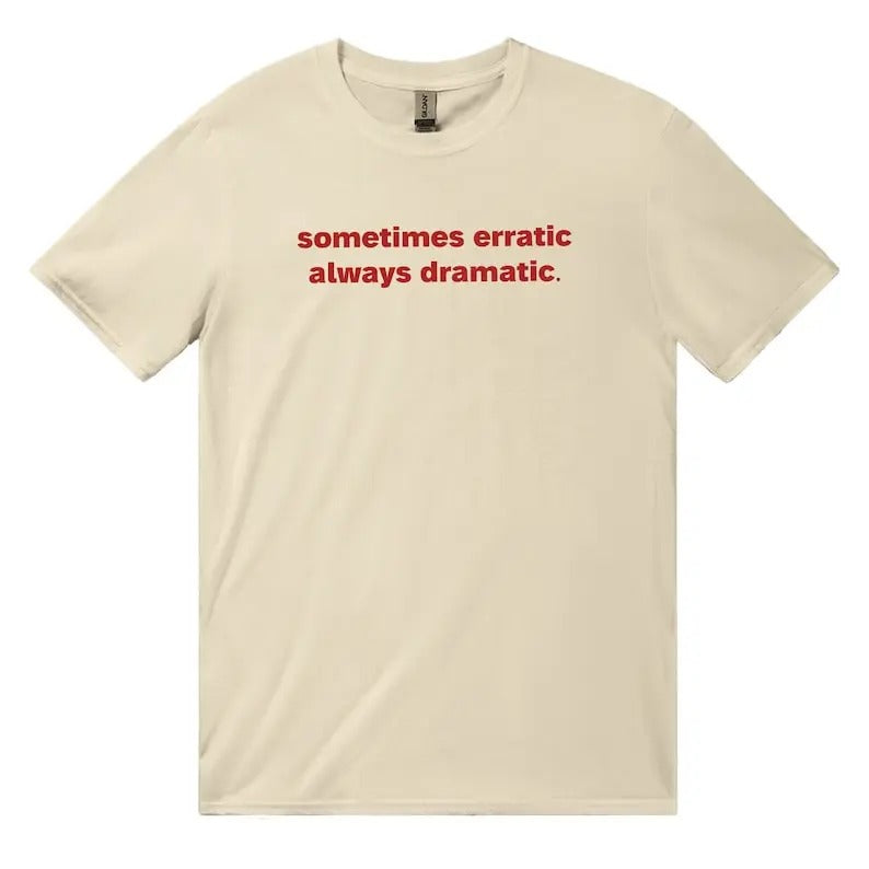 Sometimes Erratic Always Dramatic Classic Unisex Heavy Cotton T-Shirt, Iconic Slogan, 90s Aesthetic Vintage Tee, y2k