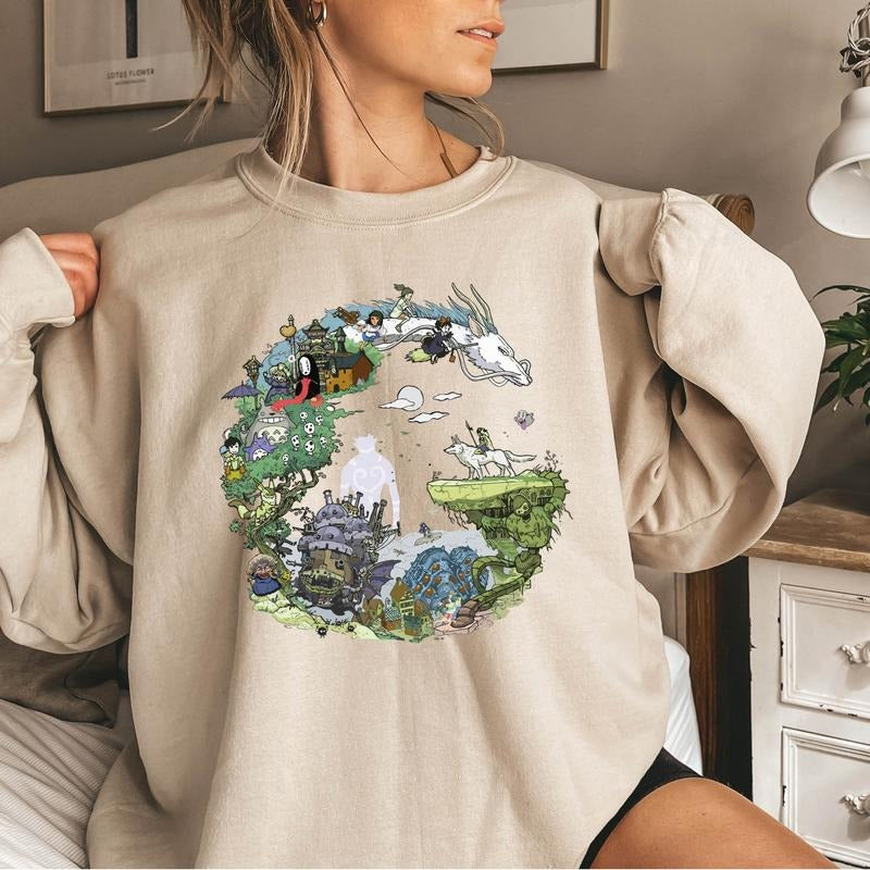 Spirited Away Studio Ghibli Sweatshirt, Howl's Moving Castle Sweatshirt, Anime Sweatshirt, Ghibli No Face Sweatshirt, Calcifer Sweatshirt