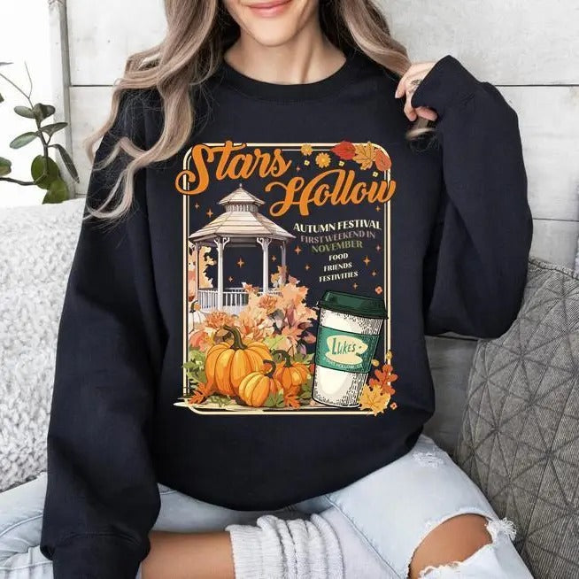 Stars Hollow Sweatshirt, Gilmore Girls Fall Vibes Luke's Diner Coffee Crew Neck Sweater, sswweatshirt hot trend