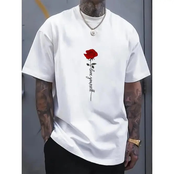 Summer Casual Crew Neck Cotton Tee Shirt for Men - Soft Slight Stretch Fabric, Alphabets Pattern, Machine Washable, Regular Fit, Knit Fabric - Perfect for Hot WeatherMade in USA