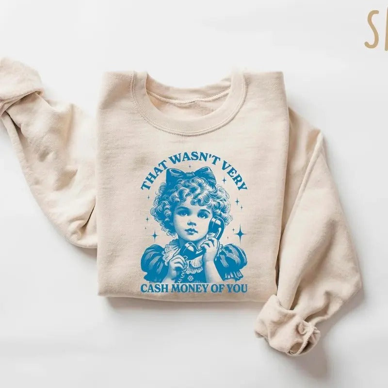 That Wasn't Very Cash Money Of You Sweatshirt, Trendy Retro Funny Shirt, Retro Cute Girl Crewneck, Funny Meme Shirt, Retro Girll Sweater