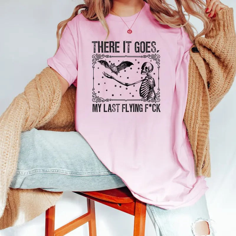 There It Goes My Last Flying Fuck Shirt Halloween Shirt Funny Skeleton Shirt Funny Halloween Shirt Skeleton Flying Bat Shirt Latarshia Grant