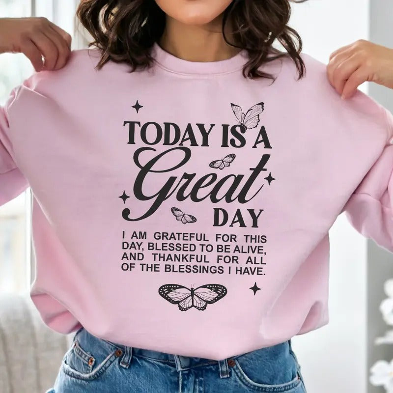 Today is a Great Day to be Grateful Sweatshirt, Happy Sweatshirt, Funny Shirt, Cute Gift, Sweatshirt for Women Full Color Print