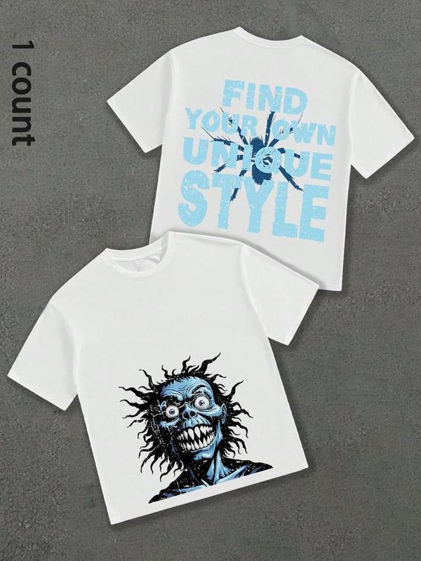 Unisex's Letter Print Round Neck Graphic Tee, Regular Fit Casual Fashion Short Sleeve T-shirt, Unisex's Summer Top for Daily Wear