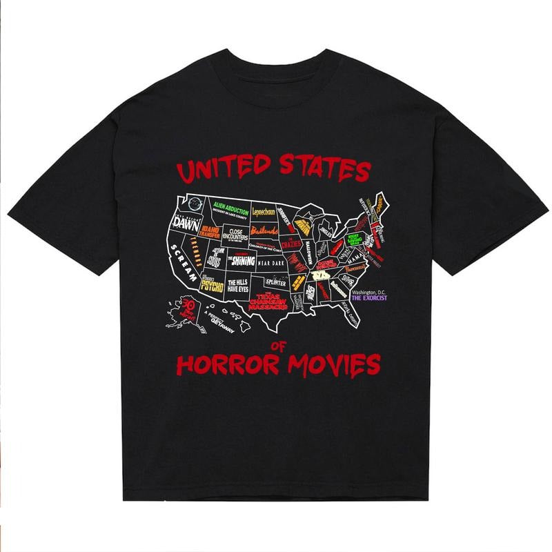United States Of Horror Movies Halloween Shirt, Halloween Map Shirt, Funny Halloween Movie Merch, Hallween Characters Shirt, Unisex Cotton Sweatshirt, Hoodie, Halloween Gift