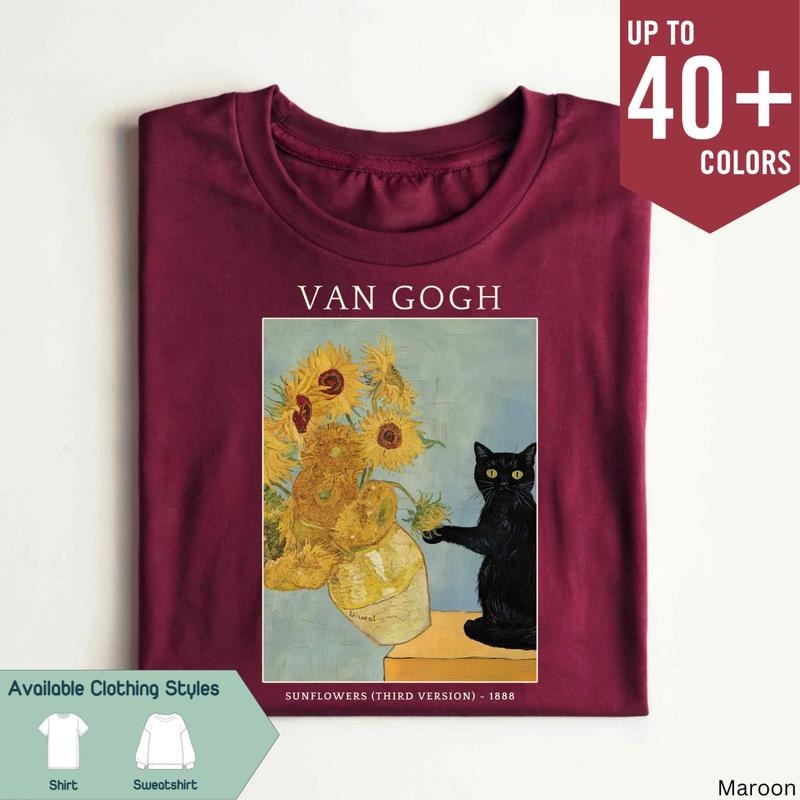 Van Gogh Sunflowers Premium T-Shirt & Sweatshirt, Unisex Art-Inspired Apparel, Cat Shirt, Funny Tee, Cute Cat Sweatshirt, Gift for Best Friend, Gift for Him & Her - Trending, Top