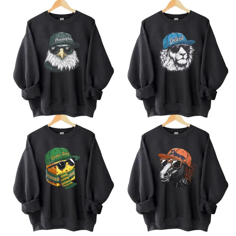 Vintage Football Team Sweathirts, Retro Mascot Graphic Tee, Sports Fan Crewneck, Unisex Graphic Shirt