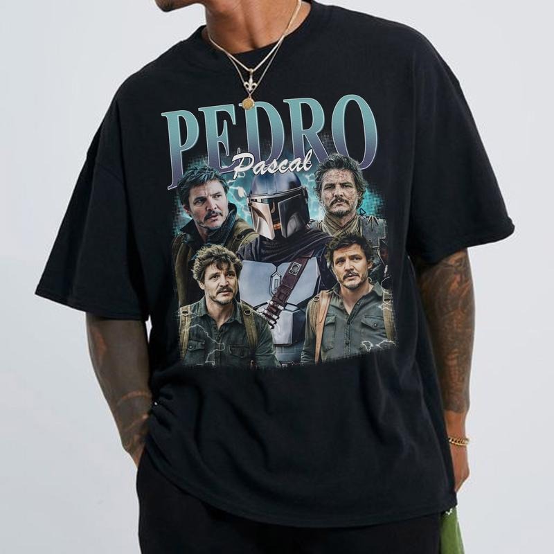 Vintage Pedro Pascal Blue Shirt, Pedro Pascal Tribute Celebrity Shirt, Pedro Pascal Fans Gift, Clothing Casual Fabric Menswear
