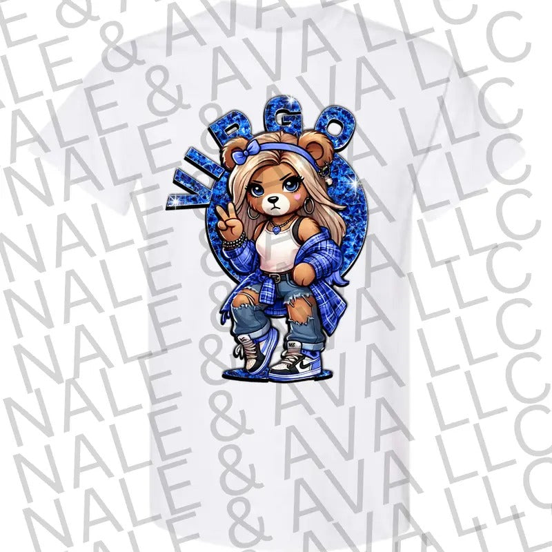Virgo Girl Zodiac Bear Graphic T Shirt for Women