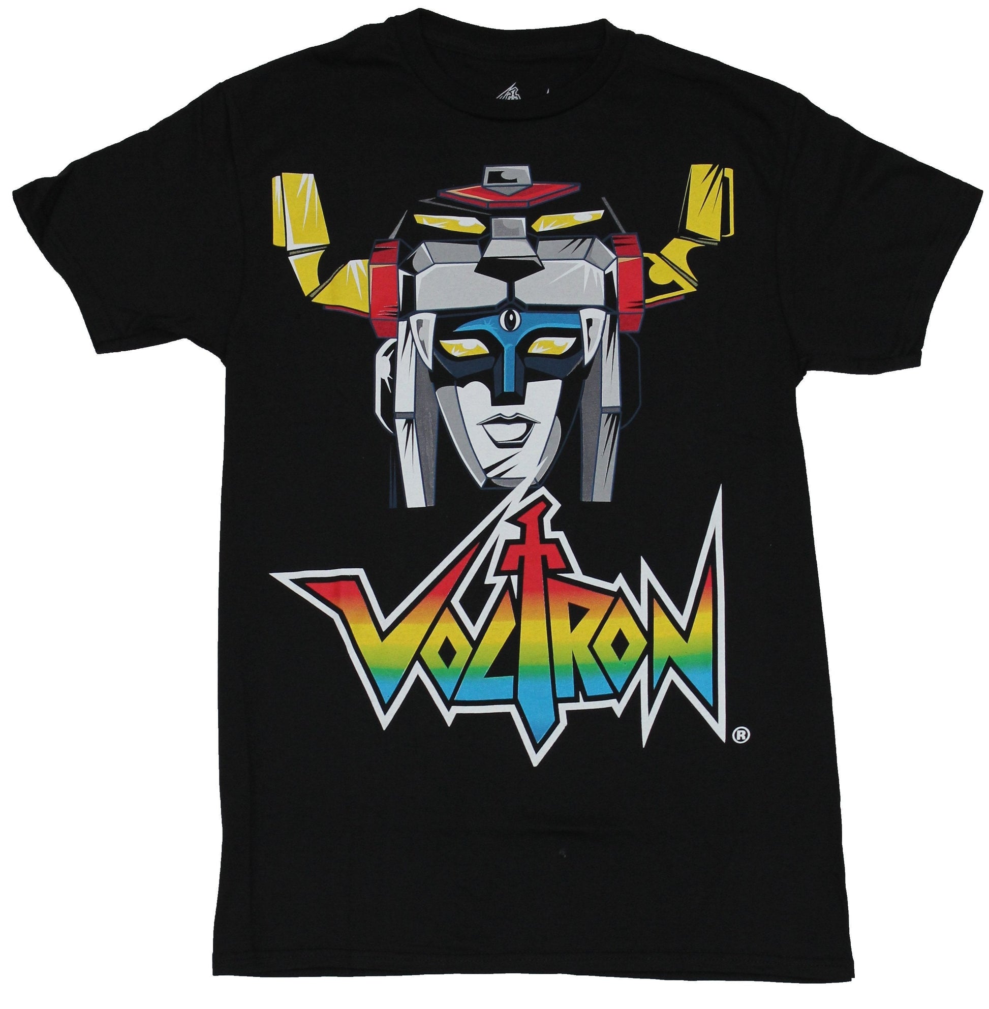 Voltron Mens T-Shirt - Classic Cartoon Head Over Colorful Logo Image