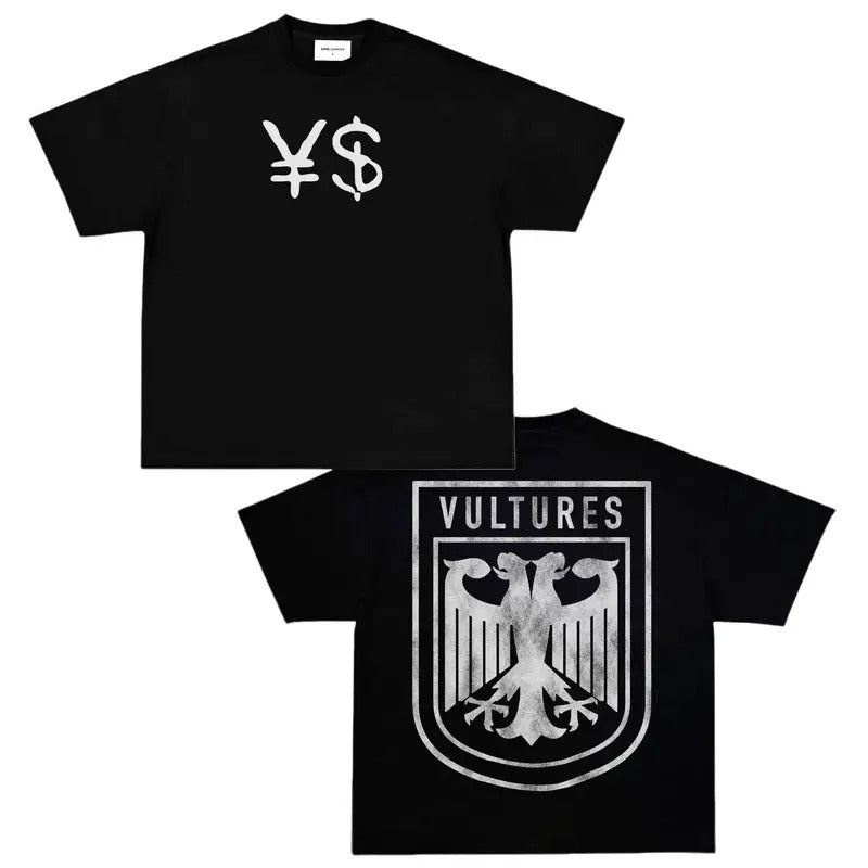 VULTURES LOGO Kayne West Vintage Streetwear Crewneck Tshirt Menswear Top Underwear Tropical Shortsleeve Round Neck