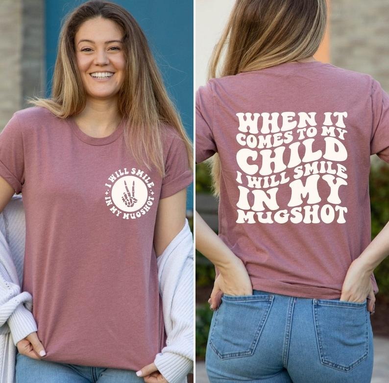 When It Comes To My Child I Will Smile In My Mugshot Shirt, Funny Mom T-Shirt, Back And Front Mom Shirts, Mom Quotes Tee, Mothers Day Gifts T-shirt, sweater and Hoodie 2 sides Cotton