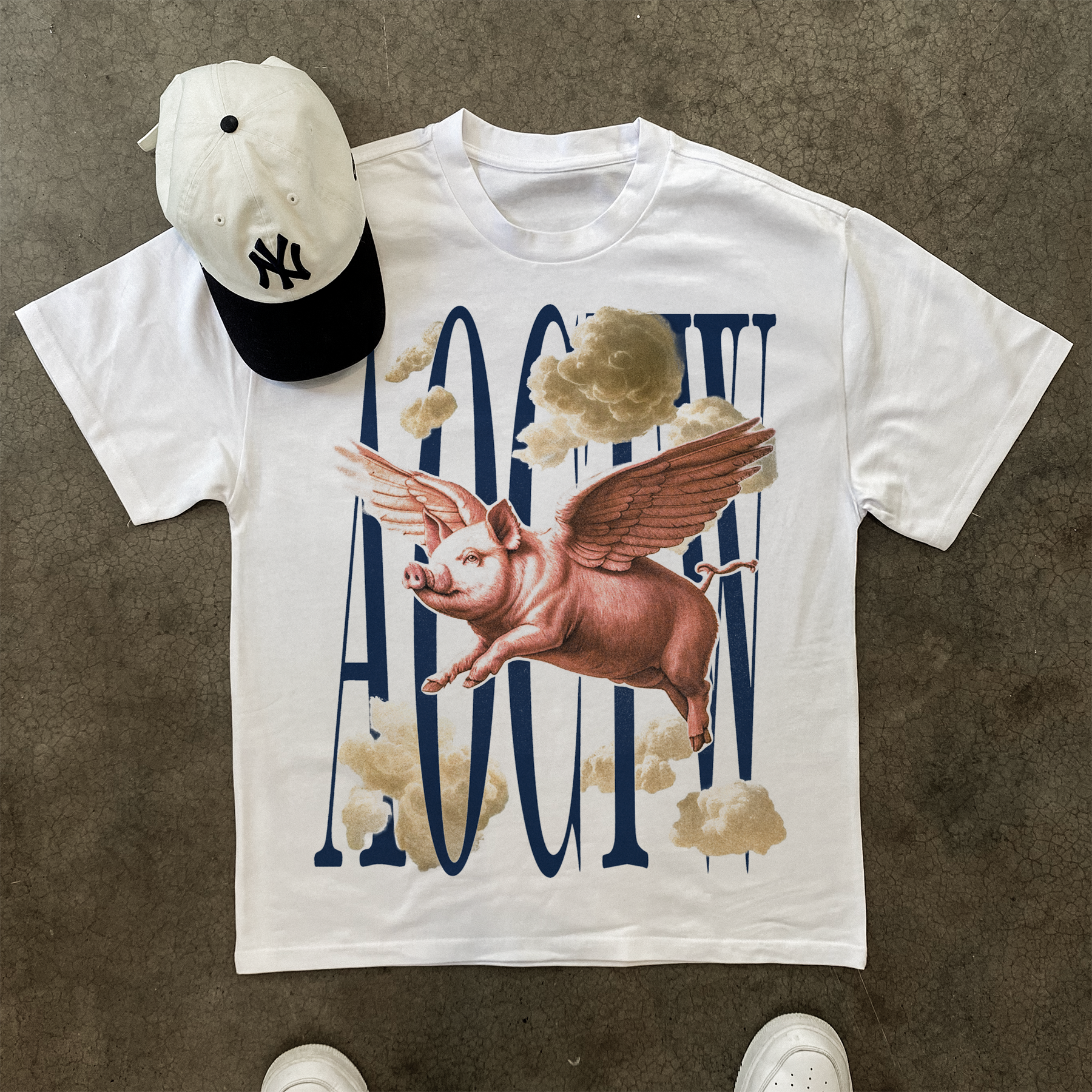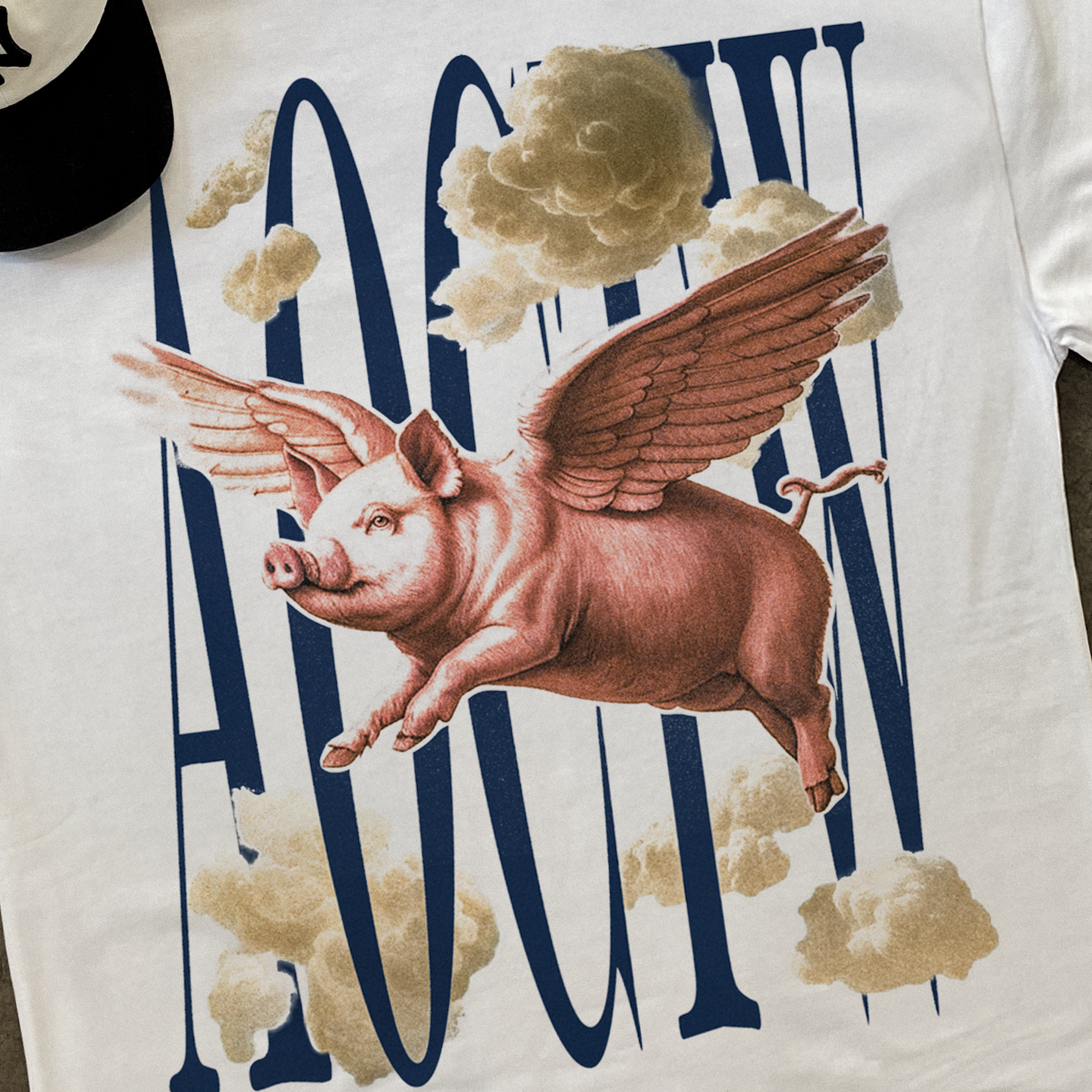 'WHEN PIGS FLY' HEAVYWEIGHT WHITE T-SHIRT