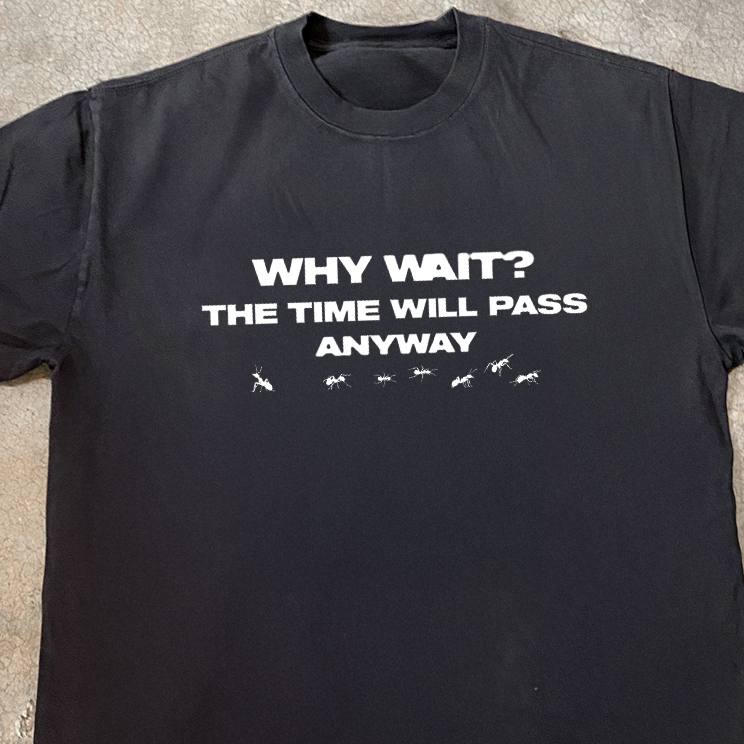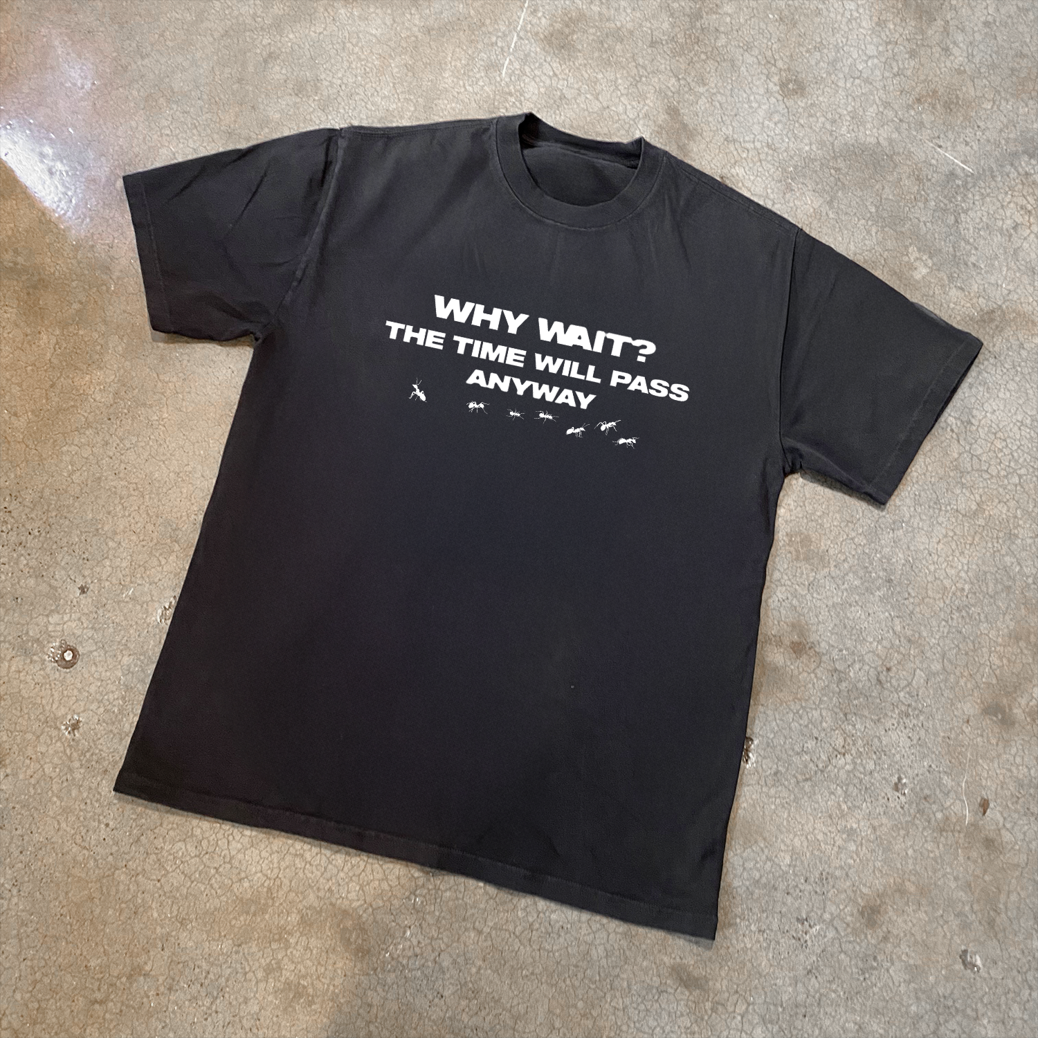 'WHY WAIT?' FADED BLACK HEAVYWEIGHT TEE
