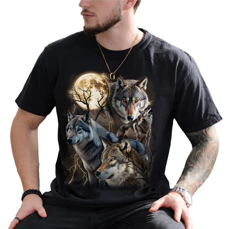 Wolf 90s Vintage Graphic Tee, Retro Howling Wolf T-shirt, 2000s Nature Moon Alpha Shirt, Wolf Lovers Retro Moon Shirt For Him, Gift For Him