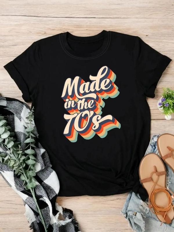 Women's Letter Print Round Neck Graphic Tee, Vintage Trendy Casual Short Sleeve T-shirt For Daily Wear, Ladies All Seasons Outfitstyle{n002}17