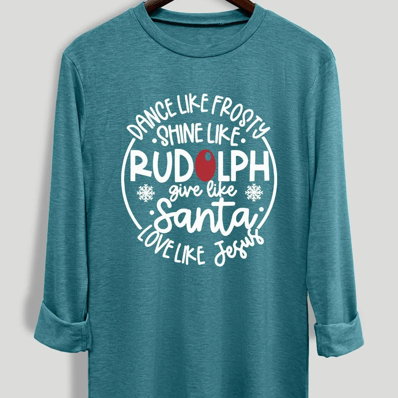 Women's Letter Print Round Neck Tee, Casual Long Sleeve Crew Neck T-shirt for Fall & Winter, Ladies Clothes for Daily Wearstyle{n002}2