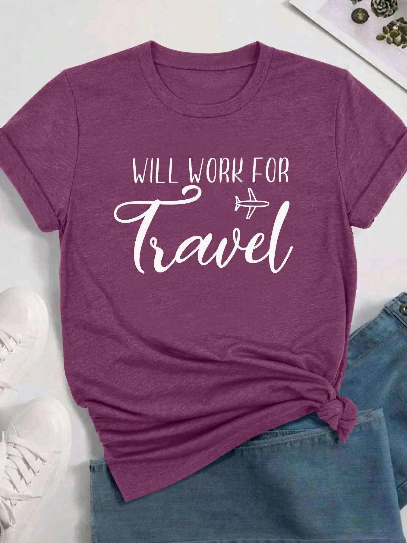 Women's Letter Print Round Neck Tee, Vintage Trendy Casual Short Sleeve T-shirt for Daily Wear, Ladies All Seasons Clothesstyle{n002}2