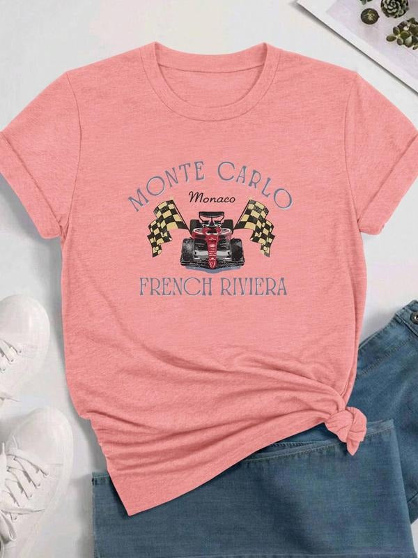 Women's Letter Print Round Neck Tee, Vintage Trendy Casual Short Sleeve T-shirt for Daily Wear, Ladies All Seasons Outfit, Top