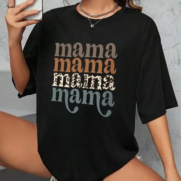 Women's "mama" Letter Print Round Neck Tee, Vintage Trendy Casual Drop Shoulder Half Sleeve T-shirt For Daily Wear, Back To School Outfits, Graphic Tees, Ladies Summer Outfit