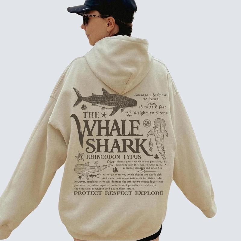 Y2K Ocean Hoodie Aesthetic Whale Shark Sweatshirt with Vintage Sea Life Graphic