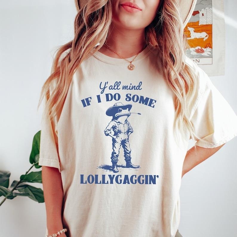 Y'all Mind If I Do Some Lollygagging Tshirt, Funny Frog Graphic Shirt, Cute Funny Frog Tee, Frog Lovers Tee, Retro Women Clothing Top Womenswear